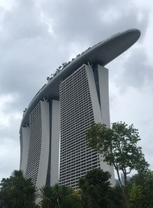 On the other hand also a annual host of Formula 1. This was the target for this ride. Leaving the bike store i needed to go towards the center. Comfortable bikelanes brought me to the big nice downtown bay which i circumnavigated. Touching the national stadium i then reached the Marina Bay Street Circus with its pit lane. All big names of formula 1 drivers were still displayed from the last F1 race normally held in september. Right after the pit lane i hit the next tourism highlight like the Singapore Flyer (big wheel) and the Marina Bay Sands Hotel.