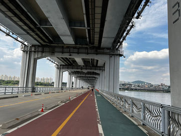 We started at their headquarter but with a good network of bike paths it is quite easy and nice to ride the town. So we quick had reached Hangang the 2nd longest river in the country.