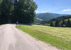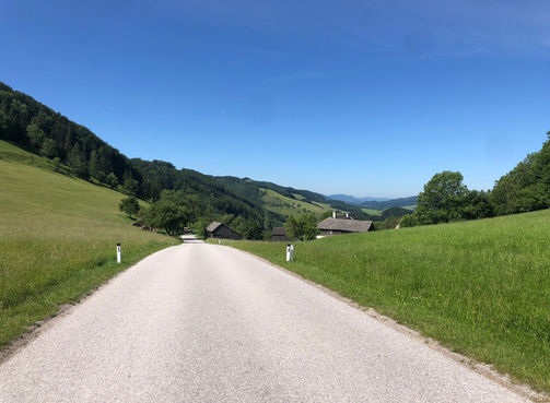 We drove to Hainfeld by car and started our journey from there, venturing into a stunning, hilly landscape, moving from valley to valley. Since Norbert's father owns a house in the area, he knows almost every mountain and designed a highly technical loop for us. The first 45 kilometers were moderately hilly, with short steep sections—just enough for a solid warm-up. We made our way through Plambach and Mainburg to reach the Pielach Valley, named after the river flowing through it. From there, we crossed over to Kirchberggegend and continued toward Kirchberg. Before entering Kirchberg, however, we tackled our first significant climb to Plankenstein.