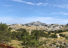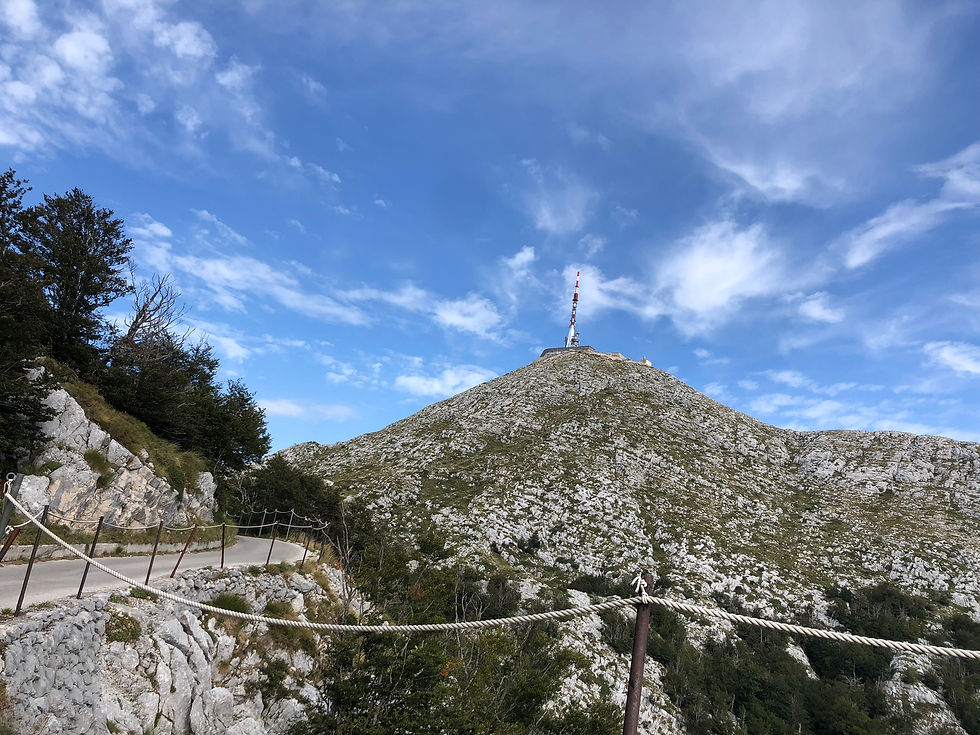 Around halfway up, I reached a plateau, and the road turned 180 degrees back north. The climb became flatter, but the peak was still out of sight. As I gained more altitude, I finally glimpsed Sveti Jure and realized I still had a lot of steep climbing to go. After a few more hairpin turns, I finally reached the summit—the highest point in Croatia.