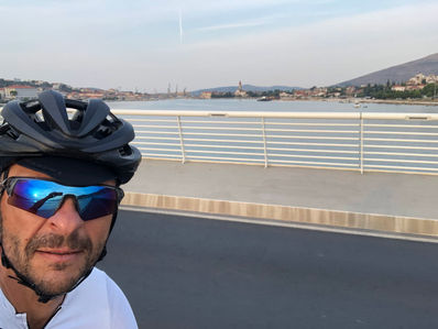 The bike ride itself took place in perfect weather. I started early to avoid the heat and enjoy the peaceful morning atmosphere. The first highlight was Trogir, about 27 kilometers in, and I arrived to find the town almost empty, without tourists or boats in the harbor. It felt like the town was on vacation itself.