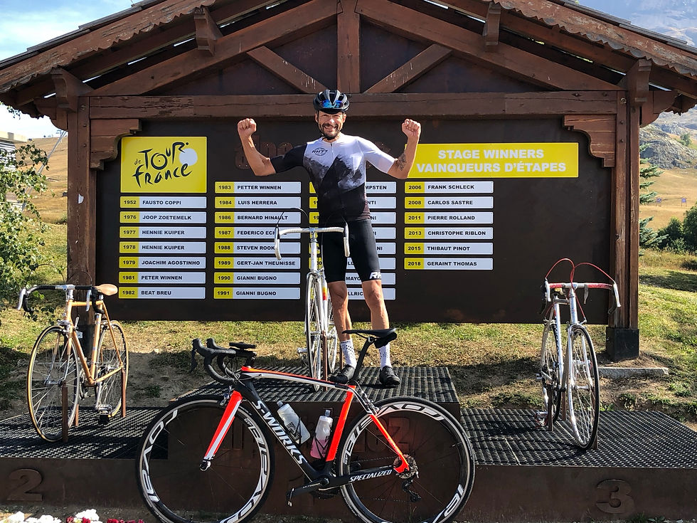 I felt a bit like a Pro in riding 2 of the most famous climbs of the french Grand Tour but with lower figures in terms of kilometers and verticals - but for sure hard enough. Starting from the hotel i needed to do a small loop in the valley to relax my legs a bit and get back to climbing mode. But then right away into the famous curvy road. The first ramp already lets you know that this is again a tricky one and the number 21 sign in the first switch back then reminds you about 20 more to come. On every plate you also find the name of a winner of the climb. As with the climb number 22 no signs were available anymore officials started again an the bottom - means on sign 21 - to write more than one. On #21 you find Fausto Coppi and Lance Armstrong.