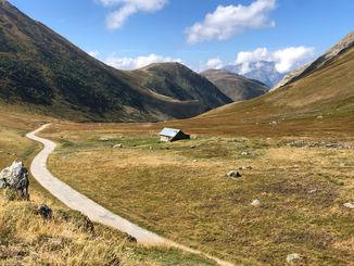 From the Ski Station i went furtheron to Col du Sarenne. On the way there i was fascinated by the wonderful landscape and the possibility to ride this terrain with a road bike. Reaching Col du Sarenne you should take the time to walk up the little hill. From there you oversee the next valley and the area of the Massif des Ecrins at Les deux Alpes with La Meije or Pic Gaspard as the highest mountains.