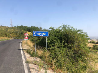 The descent was bumpy, with poorly maintained roads, and by midday, temperatures were soaring into the 40s. I took a different route down through Santarcangelo di Romagna, which brought me closer to the coastline before heading back to Cesenatico.