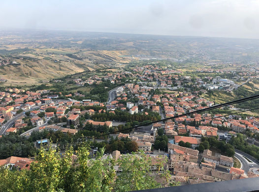 Reaching San Marino, I chose a smaller road that passed through the Italian towns of Sant'Andrea and Santo Marino before finally entering the tiny country of San Marino at Gualdicciolo. The climb was not too long, but with gradients of 7-11%, it still made me feel the effects of the previous day's ride. The effort was worth it for the stunning view down to the sea. After some sightseeing, I took a well-deserved coffee and croissant in front of the castle.