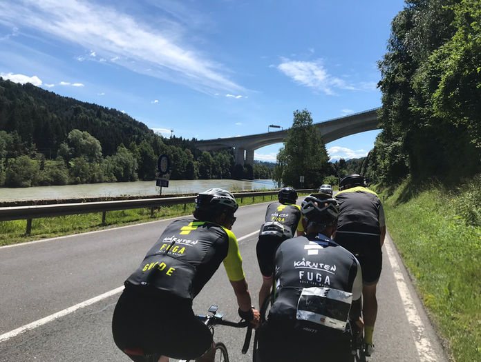 The FUGA 300, conceived by former Austrian pro cyclist Peter "Paco" Wrolich, was an ambitious ride from the highest road in Austria, the Grossglockner Hochalpenstrasse (2,369 meters), all the way to Grado, Italy, at sea level. This epic journey was a group ride with 90 cyclists from various countries and cycling backgrounds.