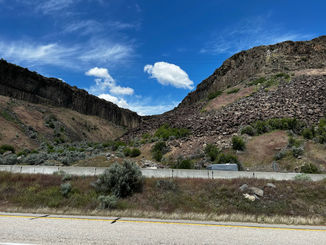 In general it must be a great area to ride around Boise a fast growing city. We decided to make it not too tough and left the city eastside riding on nice bike paths and along a river to Lucky Peak State Recreation Area. Center of it an artificial lake with a big dam on the Boise side.