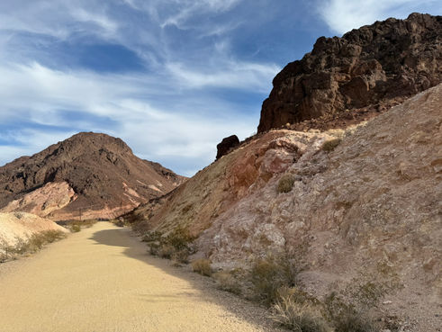 A ride from Vegas to Hoover Dam is generally doable, but it requires a full day. So, I took the truck up to Boulder and started a loop from there. From a tourist parking lot near Lake Mead, I climbed up to Boulder on a historic train trail that has been converted into a paved bicycle path.