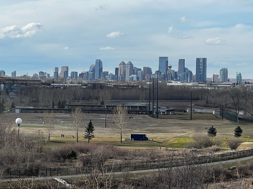 After touching Shannon Terrace Amphitheatre, I headed east, following the park until I reached the Bow River again. It was time to head back to the city, sticking to the bike paths along Bow River to avoid traffic. The only downside was the headwind, which made it feel even colder, but the sun was out, doing its best to usher in spring.